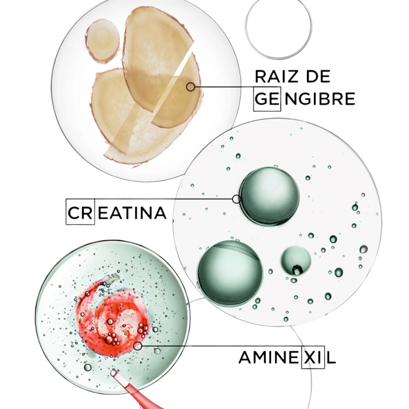 - Raiz de Gengibre: Conhecida por suas propriedades protetoras, a Raiz de Gengibre atua como um escudo contra as agressões diárias, como poluição e oxidação, mantendo o couro cabeludo e os fios saudáveis.
