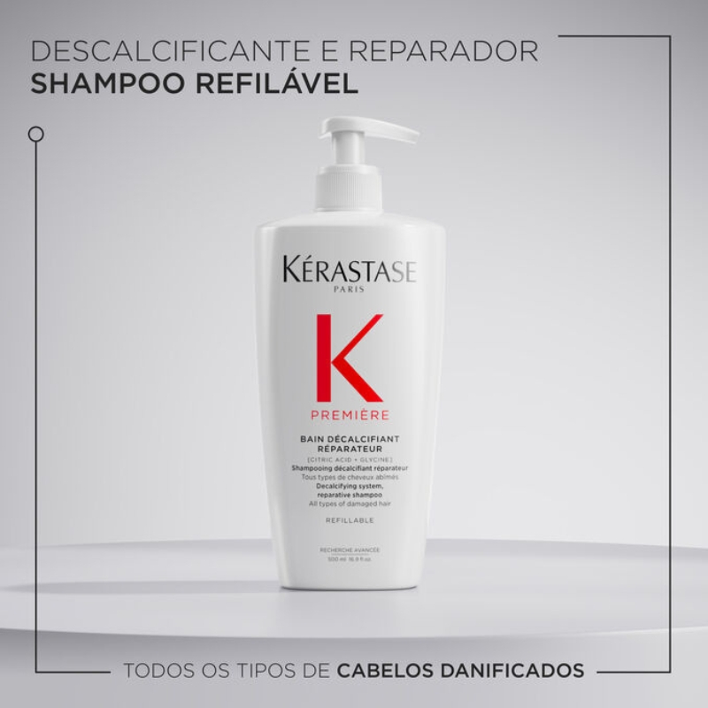 O Shampoo Kérastase Première Bain Décalfiant Réparateur representa um marco na ciência capilar, combinando três ações fundamentais em um único produto: