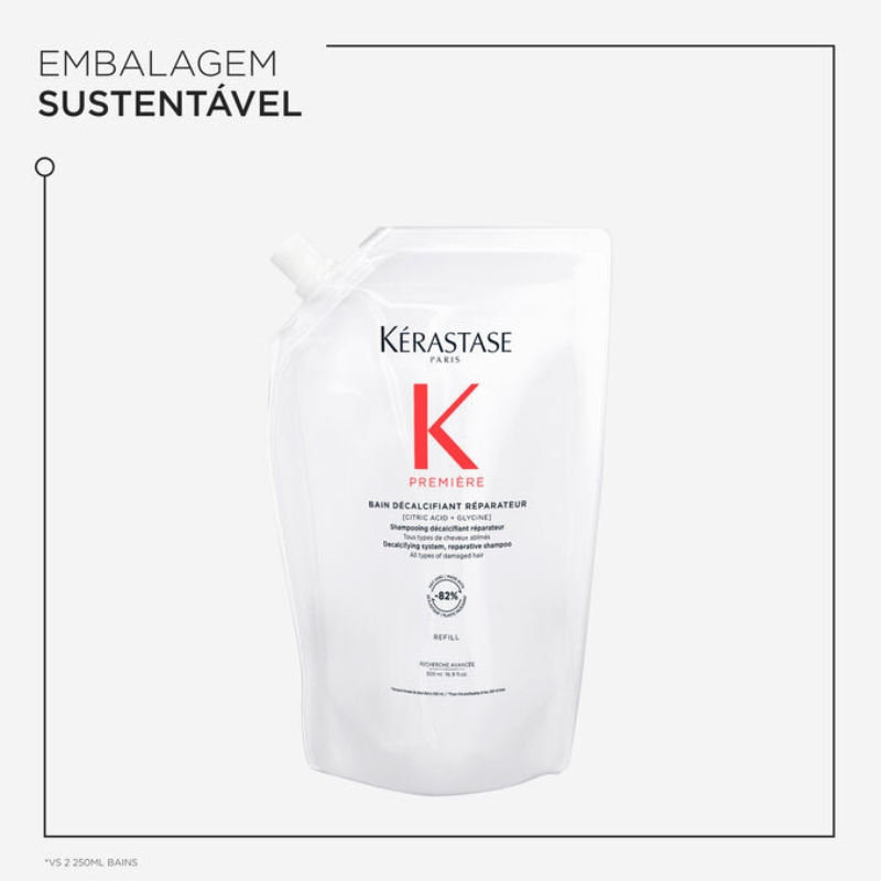 O Shampoo Kérastase Première Bain Décalfiant Réparateur em refil 500ml representa a evolução dos cuidados capilares, combinando a tecnologia tripla ação da linha Première com uma abordagem eco-responsável. Desenvolvido para salões e consumidores conscientes, este refil oferece: