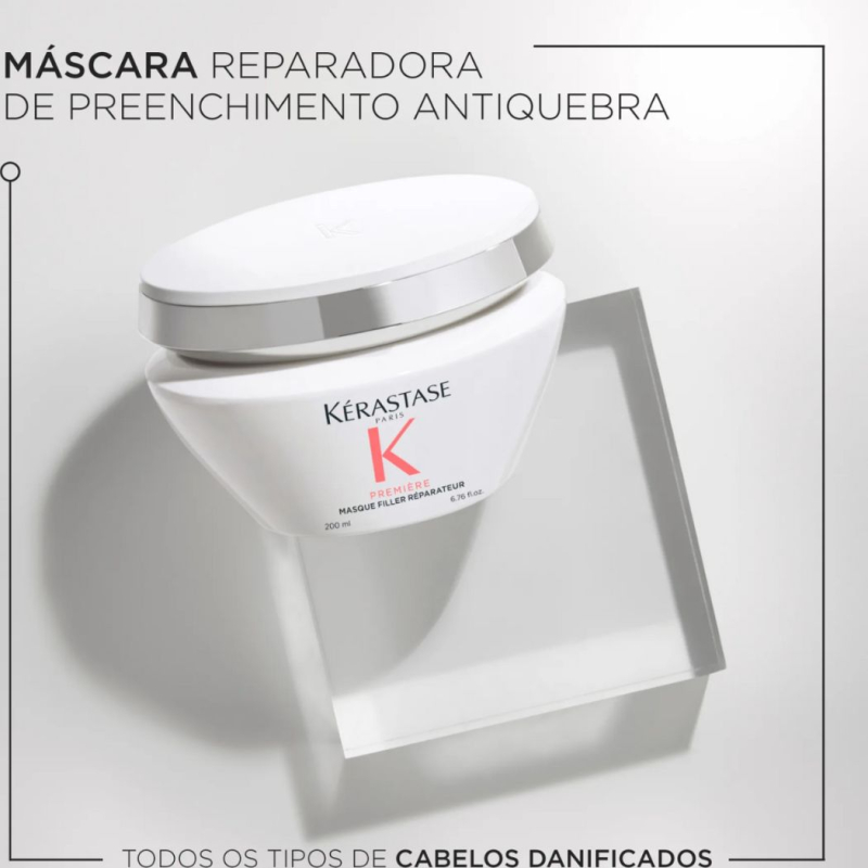 A Máscara Fillér Réparateur da Kérastase é um tratamento inovador que atua como um verdadeiro "preenchedor" para cabelos extremamente danificados. Desenvolvida com tecnologia Hyaluron-Filler + Ceramides, sua fórmula exclusiva penetra profundamente na fibra capilar, preenchendo as microfalhas causadas por químicas, calor e agressões diárias, devolvendo estrutura, elasticidade e brilho intenso aos fios.