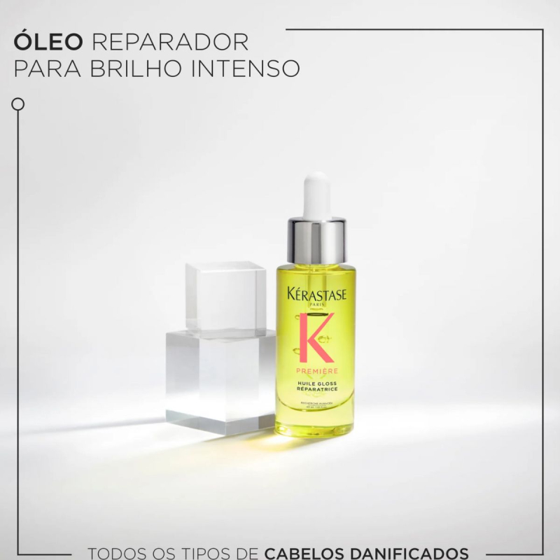 O Óleo Première Huile Gloss Réparatrice, da Kérastase, é um óleo concentrado leave-in que apresenta dupla ação: com a sua elevada concentração de agentes reparadores e de cuidado, sela as pontas duplas, aumenta a resistência do cabelo e neutraliza radicalmente a opacidade dos cabelos danificados.