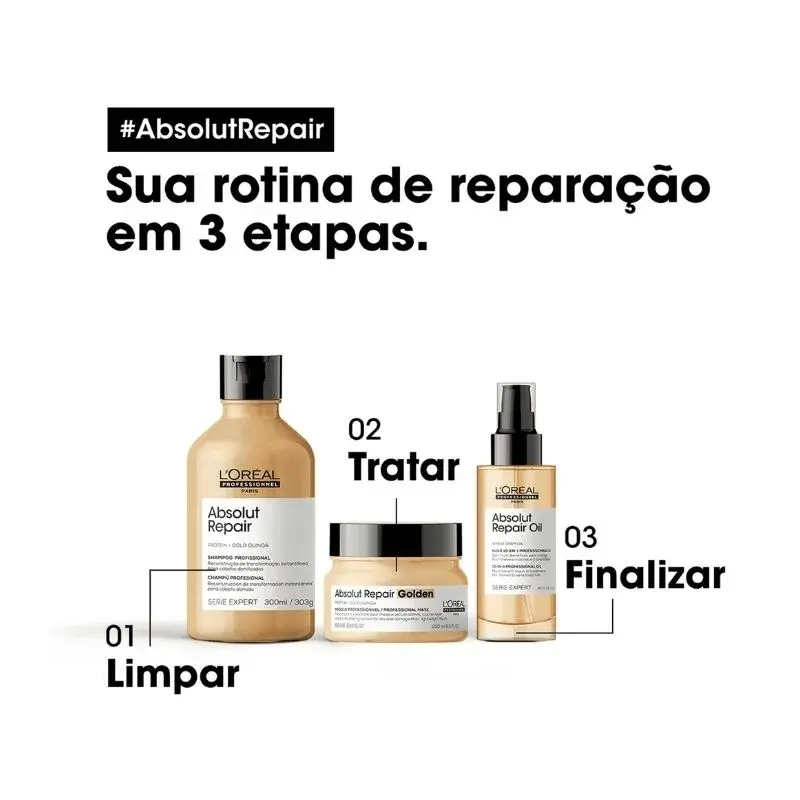 O Óleo Reparador Loréal Professionnel Absolut Repair é a solução dos meus problemas capilares. Com apenas algumas gotas, consigo domar os fios rebeldes e dar vida aos cabelos danificados. Adoro usar também como toque final para um brilho extra. Não saio de casa sem ele!