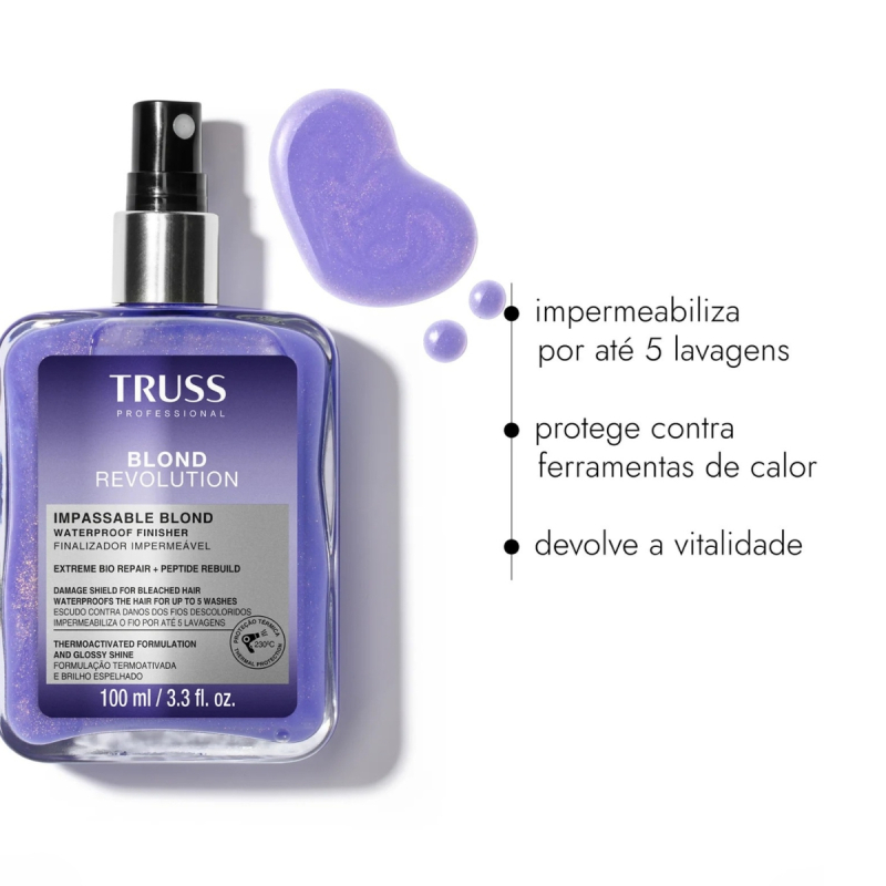 Aqui na M2Beauty, nosso time de especialistas sabe que um loiro perfeito exige cuidado, proteção e a dose certa de atenção. O Finalizador Truss Blond Revolution Impassable Blond não é apenas um finalizador; ele é o seu escudo diário contra os maiores vilões do cabelo loiro. Com ele, você não só protege a cor e o fio, mas também garante um visual de salão todos os dias, com a praticidade de usar em casa.