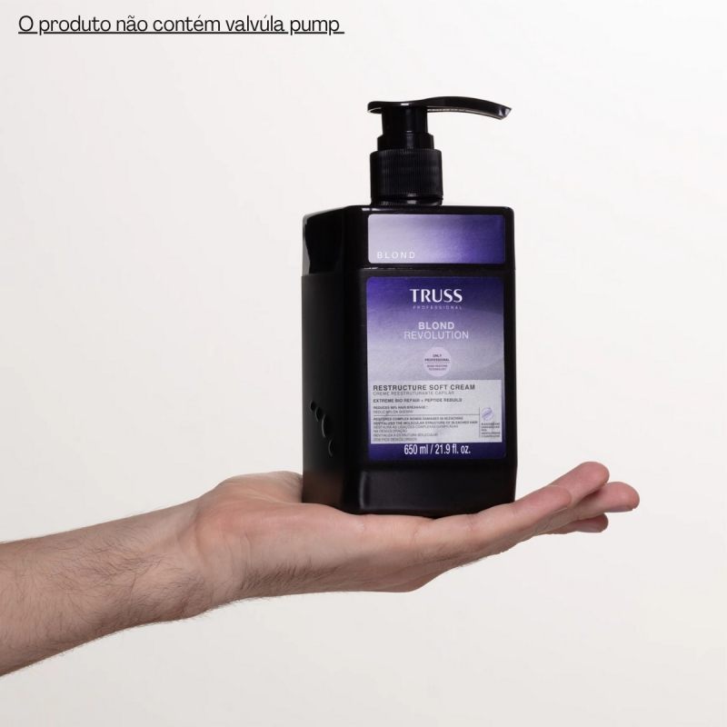 Se você tem cabelos loiros, descoloridos ou com mechas, sabe que a beleza da cor depende da saúde do fio. A Máscara Capilar TRUSS Blond Revolution Restructure Soft Cream é o tratamento de salão que você pode fazer em casa. Desenvolvida com a mais alta tecnologia da TRUSS, esta máscara cremosa de ação intensa vai além da matização, oferecendo uma reconstrução completa que devolve a integridade, a força e o brilho perdido durante os processos químicos.