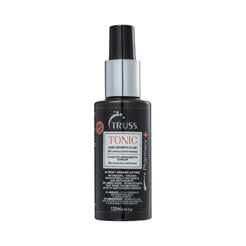 - Truss Hair Growth Fluid Pharmacy+ - Tônico Capilar 120ml: Estimula a circulação sanguínea e controla a oleosidade do couro cabeludo. Agite antes de usar e aplique no couro cabeludo uma vez por dia, massageando suavemente. Não enxágue.