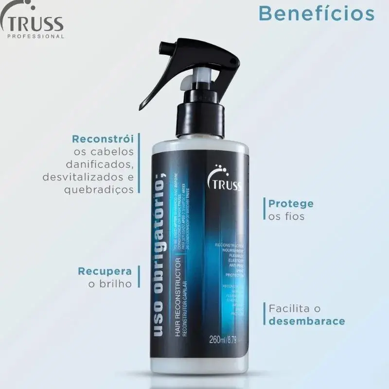 O Tratamento Reconstrutor Truss Uso Obrigatório é meu aliado na jornada para cabelos mais saudáveis. Ele repara e fortalece meus fios de dentro para fora, deixando-os mais resistentes e menos quebradiços. Estou encantada com os resultados e recomendo a todos que desejam cabelos incríveis!